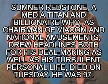 Sumner Redstone, a media titan and billionaire who, as chairman of Viacom and Na Meme Template