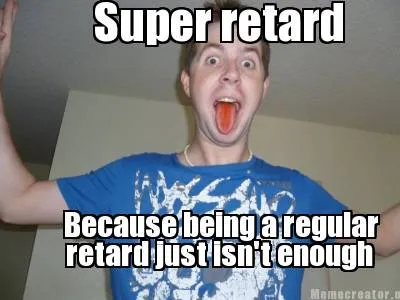 Make your own "Super retard Because being a regular retard just isn't enough" meme with MemeCreator's free online meme generator. Add text, stickers, and drawings — then download or share. No watermark, no sign-up required.