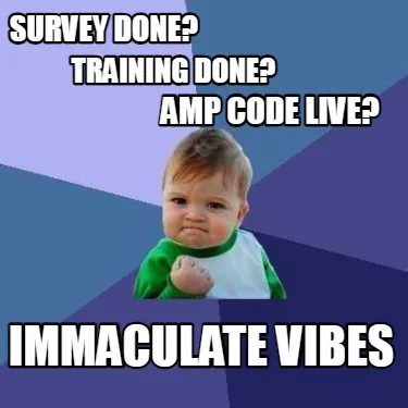 Create Survey done? Training done? Amp code live? Immaculate vibes Meme