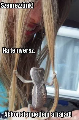 Make your own "Szemezzünk! Akkor elengedem a hajad! Ha te nyersz," meme with MemeCreator's free online meme generator. Add text, stickers, and drawings — then download or share. No watermark, no sign-up required.
