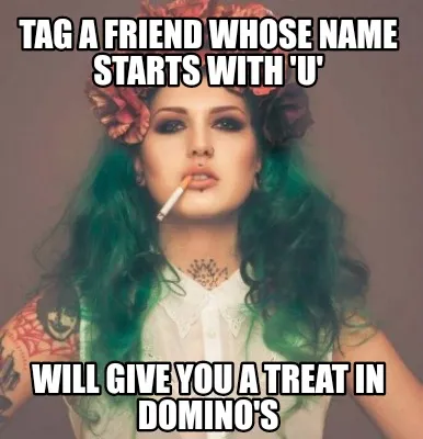 Create Tag a friend whose name starts with 'U' Will give you a treat in Domino's Meme