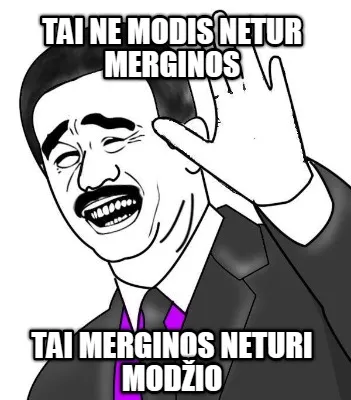 Make your own "Tai ne modis netur merginos tai merginos neturi modžio" meme with MemeCreator's free online meme generator. Add text, stickers, and drawings — then download or share. No watermark, no sign-up required.