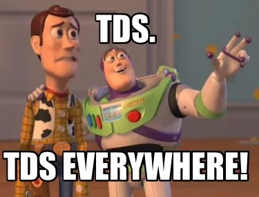 Make your own "TDS. TDS everywhere!" meme with MemeCreator's free online meme generator. Add text, stickers, and drawings — then download or share. No watermark, no sign-up required.