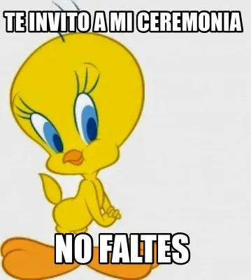 Make your own "TE INVITO A MI CEREMONIA No faltes" meme with MemeCreator's free online meme generator. Add text, stickers, and drawings — then download or share. No watermark, no sign-up required.