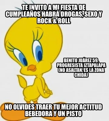 Create Te Invito A Mi Fiesta De Cumpleaos Habr Drogas Sexo Y Rock Roll No Olvides Traer Meme