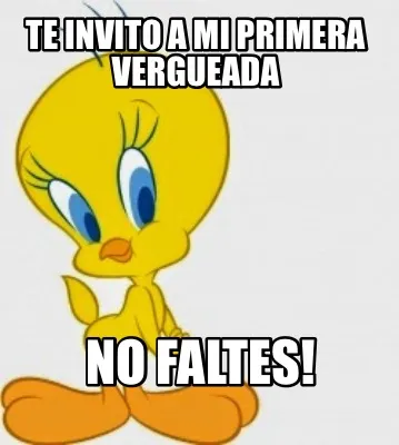 Make your own "Te invito a mi primera vergueada No faltes!" meme with MemeCreator's free online meme generator. Add text, stickers, and drawings — then download or share. No watermark, no sign-up required.