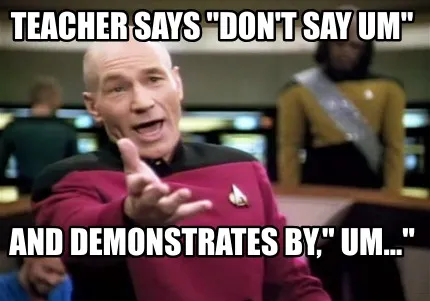 Create Teacher says "Don't say um" and demonstrates by," Um..." Meme