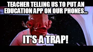 Create Teacher telling us to put an education app on our phones... It's a trap! Meme