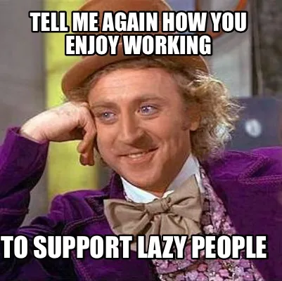 Create Funny Tell me again how you enjoy working to support lazy people Meme
