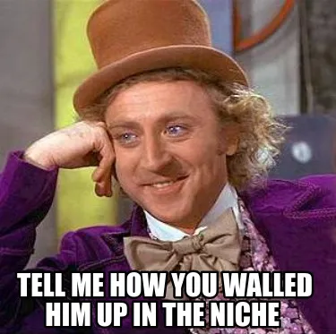 Funny Tell me how you walled him up in the niche Meme Template