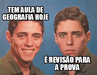 Make your own "TEM AULA DE GEOGRAFIA HOJE É REVISÃO PARA A PROVA" meme with MemeCreator's free online meme generator. Add text, stickers, and drawings — then download or share. No watermark, no sign-up required.