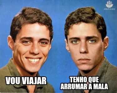 Make your own "Tenho que arrumar a mala Vou viajar" meme with MemeCreator's free online meme generator. Add text, stickers, and drawings — then download or share. No watermark, no sign-up required.