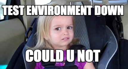 Make your own "Funny test environment down could u not" meme with MemeCreator's free online meme generator. Add text, stickers, and drawings — then download or share. No watermark, no sign-up required.