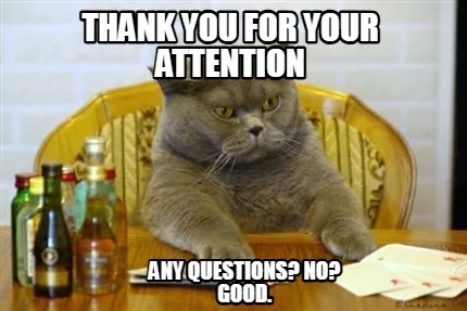 Create Funny Thank you for your attention any questions? no? good. Meme