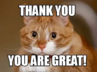 Make your own "Thank you You are great!" meme with MemeCreator's free online meme generator. Add text, stickers, and drawings — then download or share. No watermark, no sign-up required.