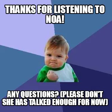 Create Funny Thanks for listening to Noa! Any questions? (please don't she has talked enough Meme