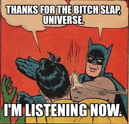 Thanks for the Bitch Slap, Universe. I'm listening now. Meme Template