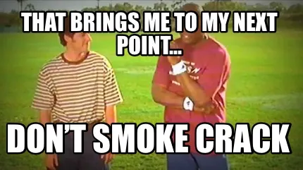 Funny That brings me to my next point... Don’t smoke crack Meme Template