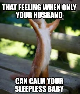 Funny That feeling when only your husband can calM your sleepless baby Meme Template