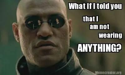That I What if I told you am not wearing ANYTHING? Meme Template