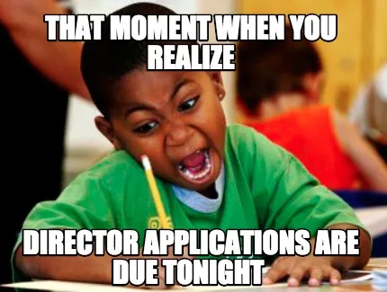 Create Funny THAT MOMENT WHEN YOU REALIZE DIRECTOR APPLICATIONS ARE DUE TONIGHT Meme