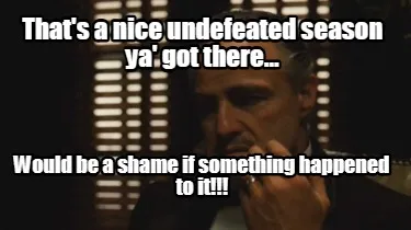 Create Funny That's a nice undefeated season ya' got there... Would be a shame if something h Meme