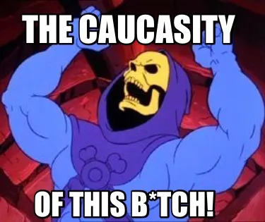 Make your own "The Caucasity of this B*tch!" meme with MemeCreator's free online meme generator. Add text, stickers, and drawings — then download or share. No watermark, no sign-up required.