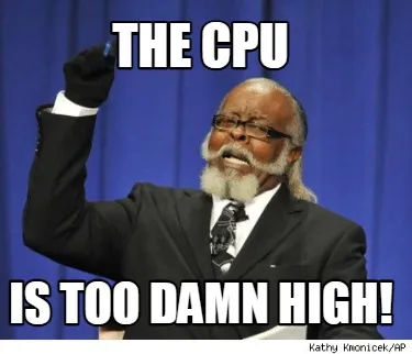 Make your own "Funny The CPU Is too damn high!" meme with MemeCreator's free online meme generator. Add text, stickers, and drawings — then download or share. No watermark, no sign-up required.