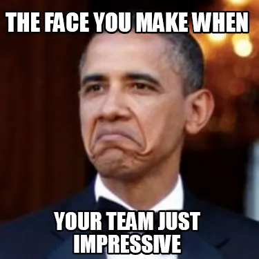 Make your own "Funny The face you make when your team just impressive" meme with MemeCreator's free online meme generator. Add text, stickers, and drawings — then download or share. No watermark, no sign-up required.