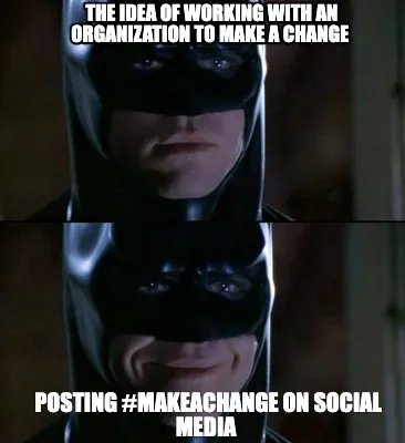 Create Funny the idea of working with an organization to make a change posting #makeachange Meme