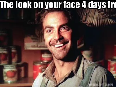 Make your own "Funny The look on your face 4 days from the start of your vacation." meme with MemeCreator's free online meme generator. Add text, stickers, and drawings — then download or share. No watermark, no sign-up required.
