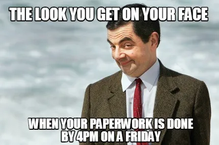 Create Funny The look you get on your face When your paperwork is done by 4pm on a friday Meme