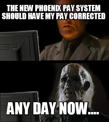 The new Phoenix Pay System should have my pay corrected any day now.... Meme Template