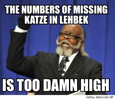 Funny The Numbers of missing Katze in Lehbek Is too damn high Meme Template