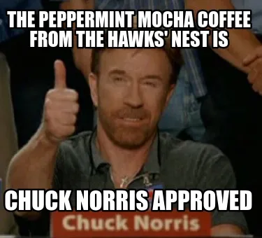 Funny the peppermint mocha coffee from the hawks' nest is chuck norris approved Meme Template