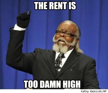 Make your own "The rent is Too damn high" meme with MemeCreator's free online meme generator. Add text, stickers, and drawings — then download or share. No watermark, no sign-up required.