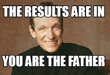 Make your own "The results are in You are the father" meme with MemeCreator's free online meme generator. Add text, stickers, and drawings — then download or share. No watermark, no sign-up required.