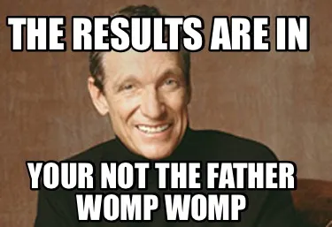 Make your own "Funny The results are in Your not the father womp womp" meme with MemeCreator's free online meme generator. Add text, stickers, and drawings — then download or share. No watermark, no sign-up required.