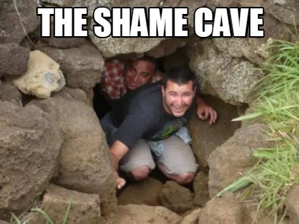Make your own "The shame cave" meme with MemeCreator's free online meme generator. Add text, stickers, and drawings — then download or share. No watermark, no sign-up required.