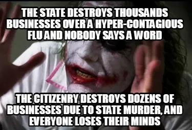 Create The state destroys thousands businesses over a hyper-contagious flu and nobody s Meme