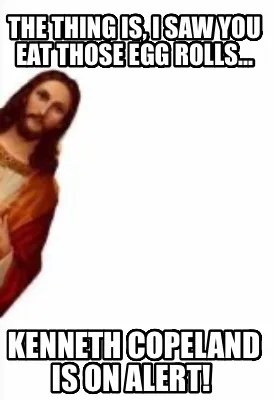 Create The thing is, I saw you eat those egg rolls... Kenneth Copeland is on alert! Meme