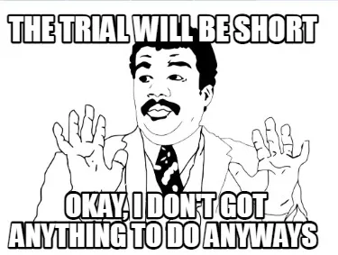 The trial will be short Okay, I don't got anything to do anyways Meme Template