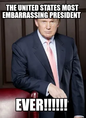 Make your own "THE UNITED STATES MOST EMBARRASSING PRESIDENT EVER!!!!!!" meme with MemeCreator's free online meme generator. Add text, stickers, and drawings — then download or share. No watermark, no sign-up required.