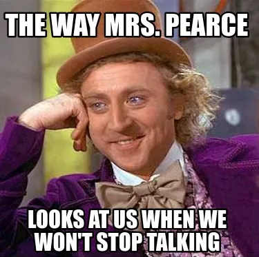 Create Funny The way Mrs. Pearce looks at us when we won't stop talking Meme