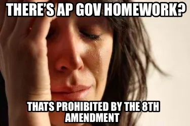 There’s ap gov homework? Thats prohibited by the 8th amendment Meme Template