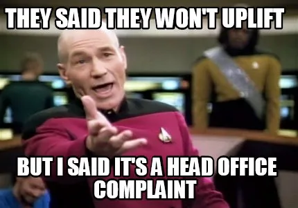 They said they won't uplift But I said it's a head office complaint Meme Template