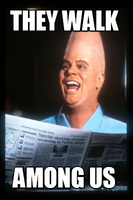 Make your own "They walk among us" meme with MemeCreator's free online meme generator. Add text, stickers, and drawings — then download or share. No watermark, no sign-up required.