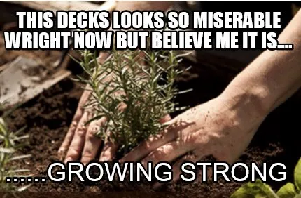 Funny THIS DECKS LOOKS SO MISERABLE WRIGHT NOW BUT BELIEVE ME IT IS.... ......GROWING Meme Template