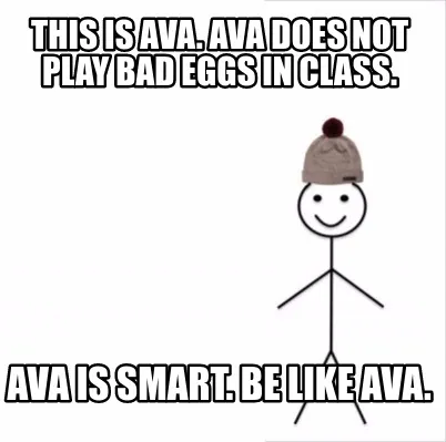 Create This is Ava. Ava does not play bad eggs in class. Ava is smart. Be like Ava. Meme