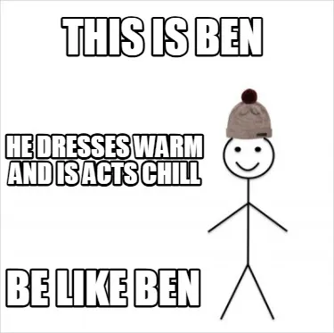 THIS IS BEN BE LIKE BEN HE DRESSES WARM AND IS ACTS CHILL Meme Template